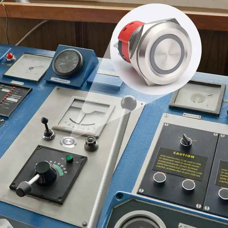 Here is a momentary push button made of stainless steel and silver, with an LED ring pattern for ultimate durability and sleekness. Fortunately, the LED pattern comes in white, yellow, green, blue, and red, so take your pick!