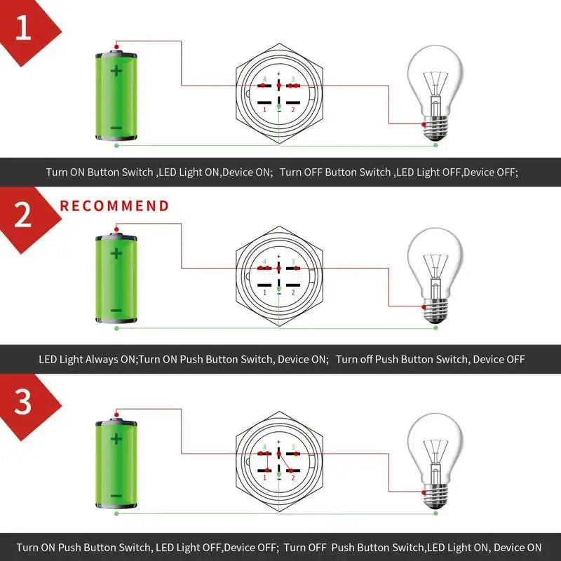 This push button switch is constructed to be installed in a mounting hole of 25mm. It operates via a NO NC configuration combined with momentary functioning. This means you have to push to switch on and let go to switch off. Nevertheless, the momentary operation means you have to keep pushing the switch for it to remain on.
