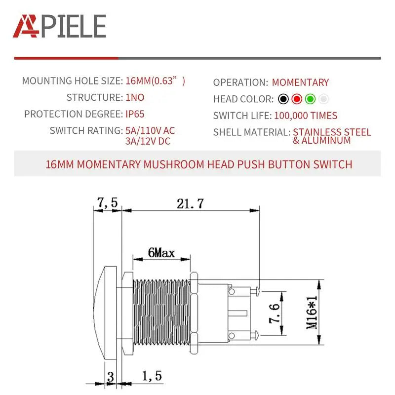 This mushroom-head push button switch is nothing is not the perfect blend of functionality and good looks. It comes with all the features you'll need, from a momentary push button switch, including a lightweight and durable aluminum build for durability and the mushroom-head design for unrivaled good looks.
