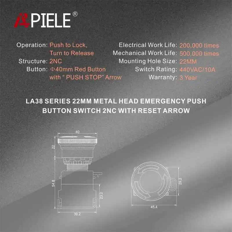 What’s more, they can be directly installed on a 22mm mounting hole. Fortunately, no extra accessories are needed to install these robust and highly dependable emergency stop push button switches.