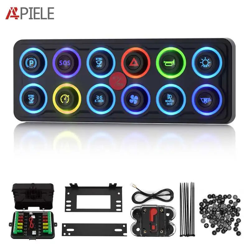 APIELE 12 Gang Multicolored Toggle Momentary Switch Panel, Electronic Relay System For Yachts Trucks Off-Road Vehicles RVs SUVs UTVs ATVs- IP68 Waterproof