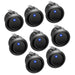 These switches sport a black build comprising metal and plastic materials. The black color and the dot-light color make this a good-looking button. The dot light comes in green, white, yellow, red, and blue for variety. Something else about the dot light is that it indicates when the switch is on by lighting, and when the button turns off, so does the dot light.